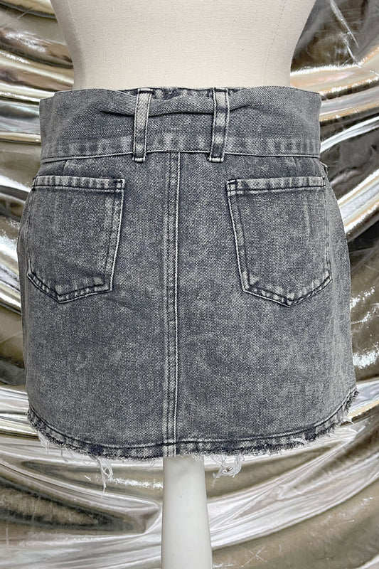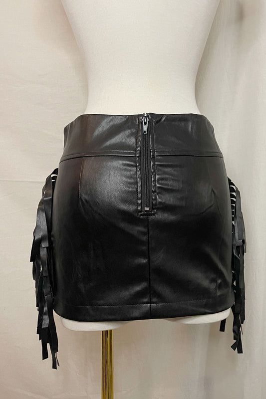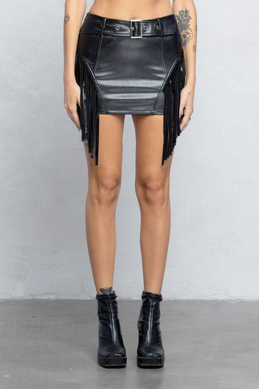 CHELSIE FRINGE LEATHER MINI SKIRT W/ STUDS