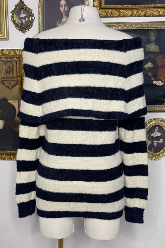 CATHERINE OFF SHOULDER STRIPED SWEATER