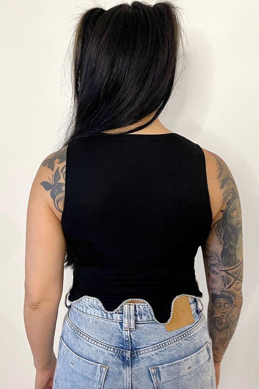 KAT SLEEVELESS RHINESTONE TRIM TOP