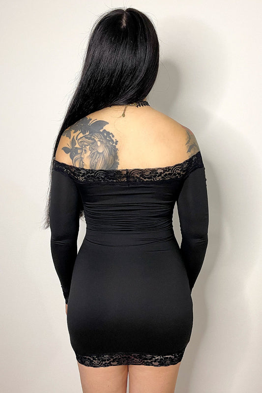 PALOMA OFF SHOULDER LACE TRIM MINI DRESS