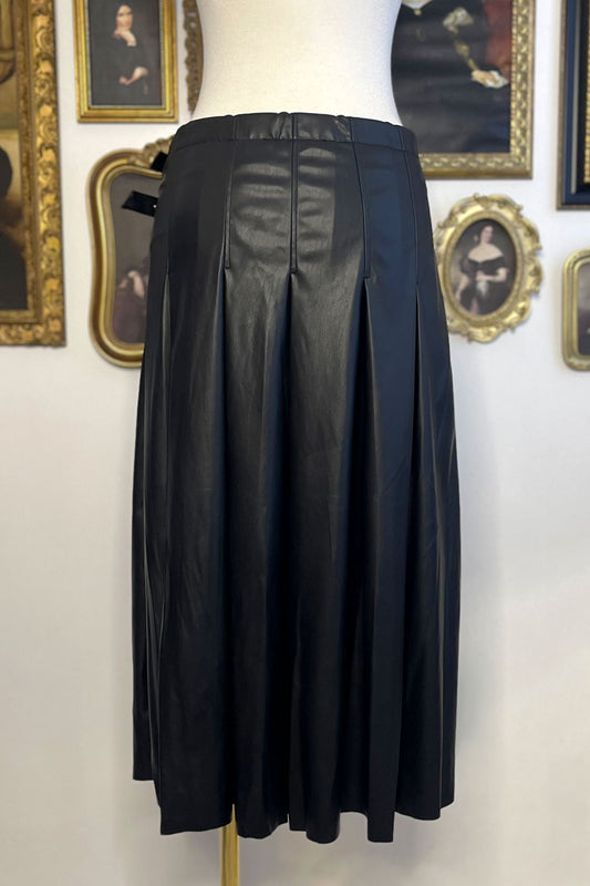NATALIA MIDI PLEATED FAUX LEATHER SKIRT