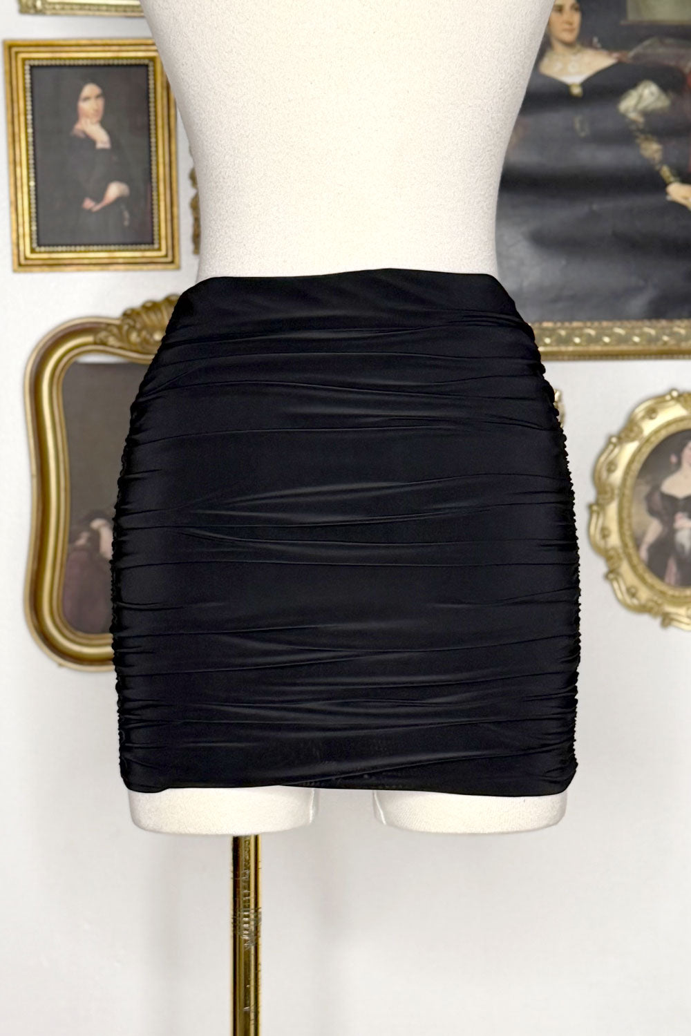 High waisted ruched mini skirt.