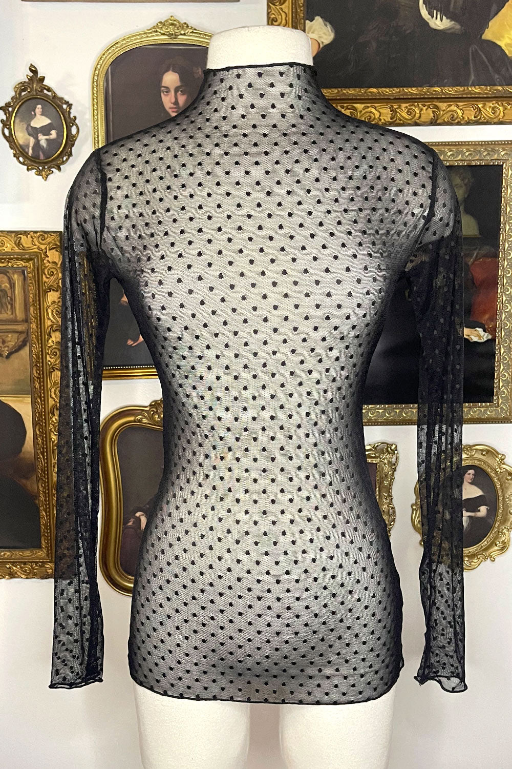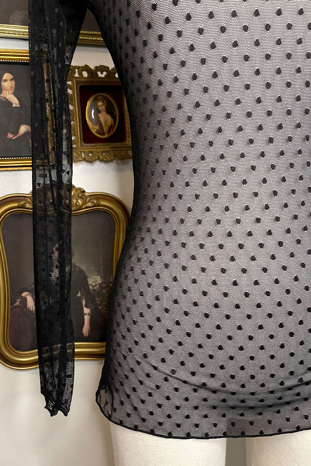 Introducing our Stephanie Polka Dot Mesh Top, exquisitely crafted with long sleeves and sheer mesh fabric. This full-length top adds a touch of sophistication to any outfit, perfect for a night out or evening event. Embrace your inner elegance and make a statement with this luxurious piece.
